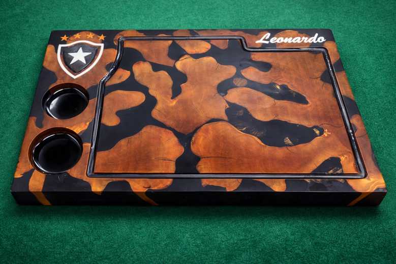 Nossa tábua de churrasco é produzida em madeira maciça, garantindo alta resistência, durabilidade e presença marcante na sua área gourmet.